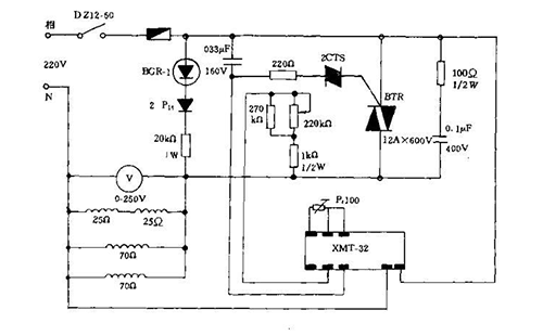 下圖為BGX-2080型防爆真空干燥箱的電路原理圖如圖,箱體的溫度控制采用了智能電腦溫控,溫度信號的采集用鉑電阻,經(jīng)溫度控制器的放大與設(shè)定值進(jìn)行比較得到PID控制信號,控制信號將控制可控硅的通斷,可控硅再控制加熱器加熱狀態(tài),達(dá)到自動控溫的目的。
